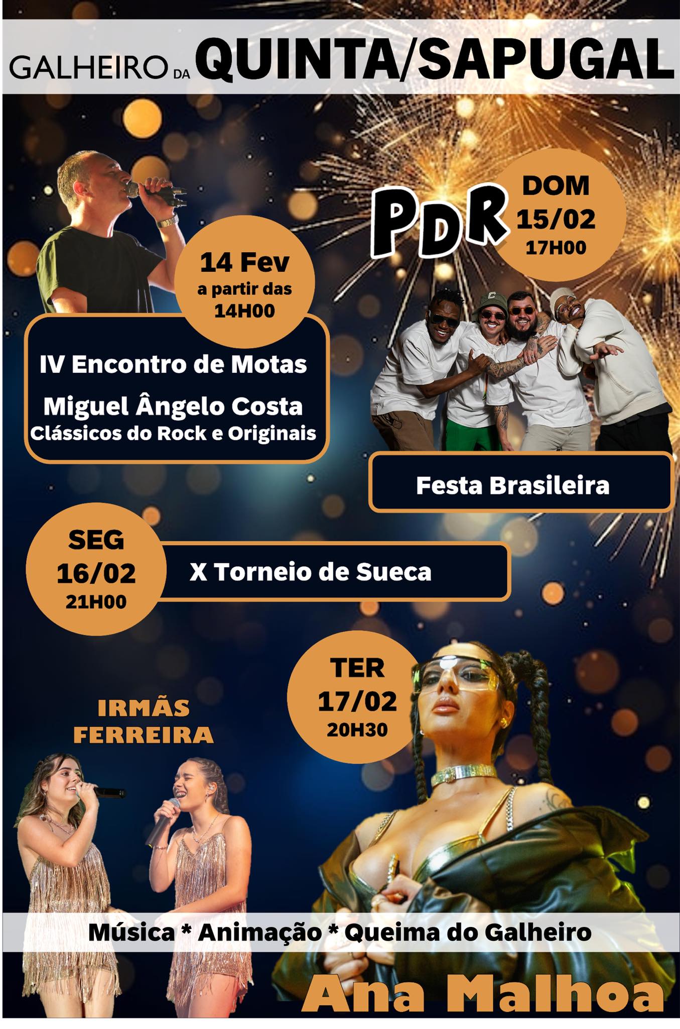 A tradição popular regressa no dia 16, às 21h00, com o sempre competitivo X Torneio de Sueca, animado pelas vozes das Irmãs Ferreira. O grande clímax está reservado para o dia 17, às 20h30, com a atuação da icónica Ana Malhoa, que promete encerrar o evento com um espetáculo explosivo.