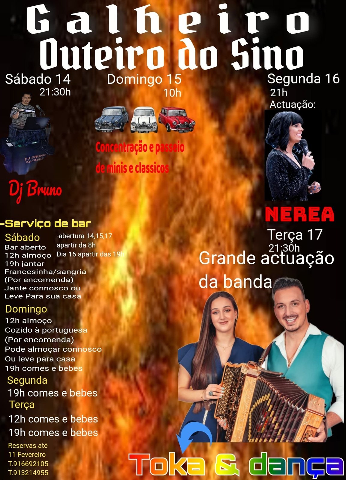 O lugar do Outeiro do Sino, em Fradelos, prepara-se para quatro dias de intensa folia entre 14 e 17 de fevereiro. O programa combina a mística da Queima do Galheiro com desfiles de clássicos e iguarias como o Cozido à Portuguesa.