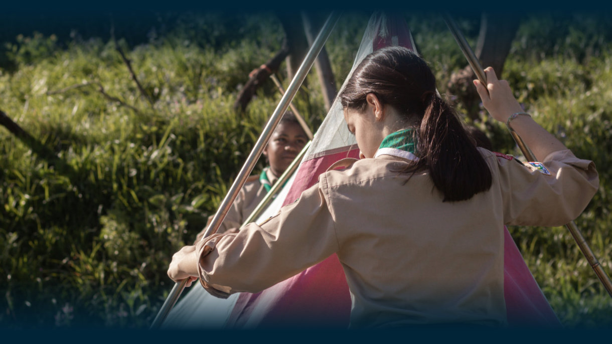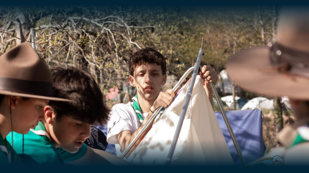 O despertar do campo foi assinalado pela montagem das estruturas logísticas. Entre o manuseamento de cordas e a fixação de estacas na terra, os exploradores levantaram os seus abrigos, transformando o espaço num centro de operações vivo. Aquelas construções, mais do que simples refúgios, simbolizam a preparação técnica e o espírito de patrulha necessários para enfrentar os desafios previstos para os próximos dias.
