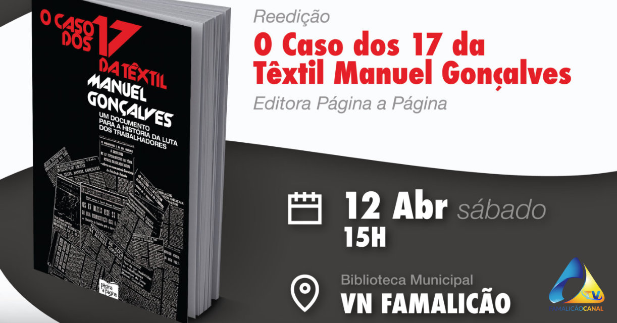 A CDU de Famalicão promove a apresentação pública da reedição do livro “O Caso Dos 17 da Têxtil Manuel Gonçalves”. O momento realiza-se no sábado, dia 12, pelas 15h00, na Biblioteca Municipal de Famalicão.